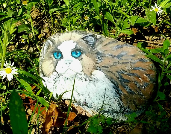 This cat is about 5.5" long and is what I would call a slightly flattened potato shaped rock. These look really cute setting in a little basket or on a small pillow.............$22