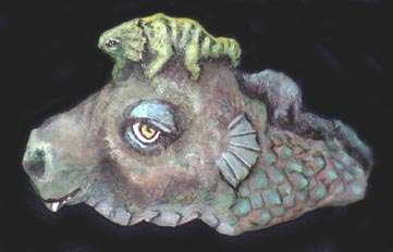 Chameleon ~ common name for certain lizards that are well known for their ability to change colors when frightened and in response to light, temperature, and other environmental changes. The color change is caused by harmones that affect special pigment- bearing cells in the skin. It's color does not always change to match its surroundings, however, as is commonly believed.